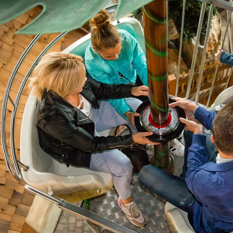 Take a seat in a basket, on the branches of the giant Wirbelbaum. As you rotate, you go a bit higher each time. Until you find yourself at thirteen metres high overlooking Wunderwald. That is, if you have the time, because you can decide how adventurous your tree-climbing will be.