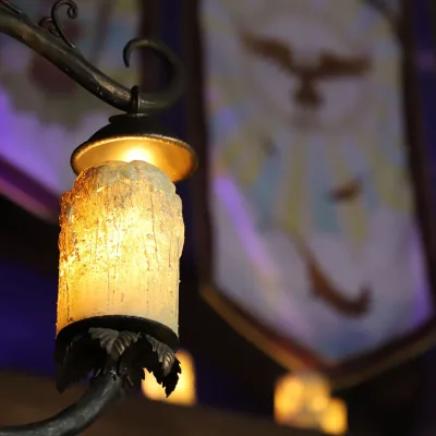 Verscholen in de groene heuvels van themawereld Avalon ligt The Flaming Feather. Een middeleeuwse herberg vol mythes en oude legendes. Tovenaars en magiërs komen hier al eeuwenlang samen om te filosoferen over de strijd tegen het kwaad. En dat alles onder het genot van een goed bord vol en verrukkelijke dranken. Nu is het jouw beurt.