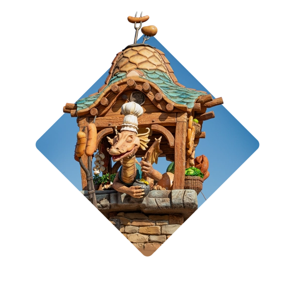 The Flaming Feather is hét bedieningsrestaurant van Toverland. Hier geniet van je van bourgondische lunch- en dinergerechten onder een betoverende sterrenhemel. We leggen je hier compleet in de watten. Geef je ogen ook eens goed de kost aan alle details.