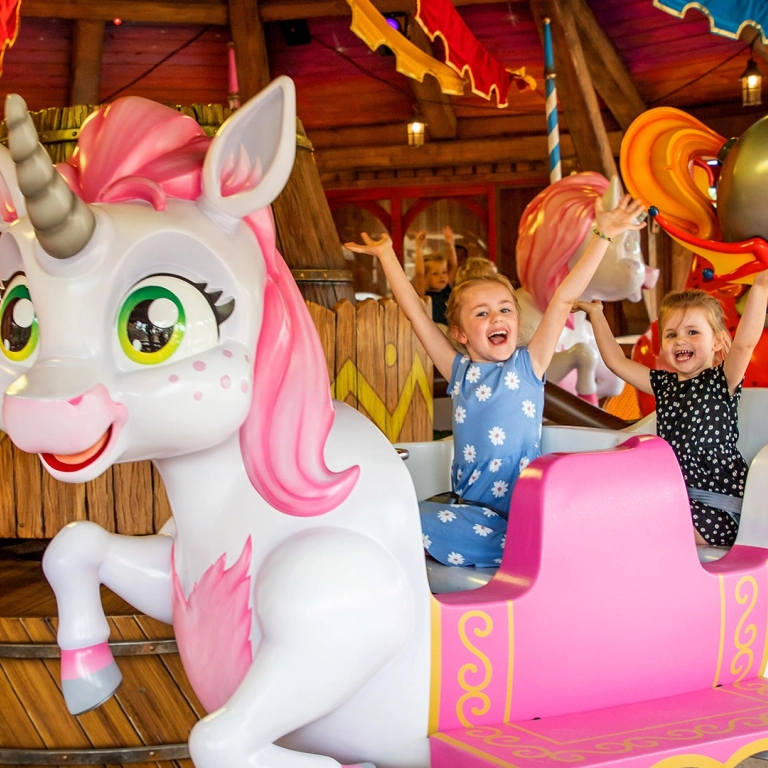 Juna, das stets fröhliche Einhorn, feiert eine Kostümparty! Der Drache Sparky ist schelmisch genug, um mitzumachen, also steige auf seinen Rücken und drehe eine herrliche Runde unter den flatternden Fahnen. Du wirst schnell merken, dass dies kein normales Karussell ist.