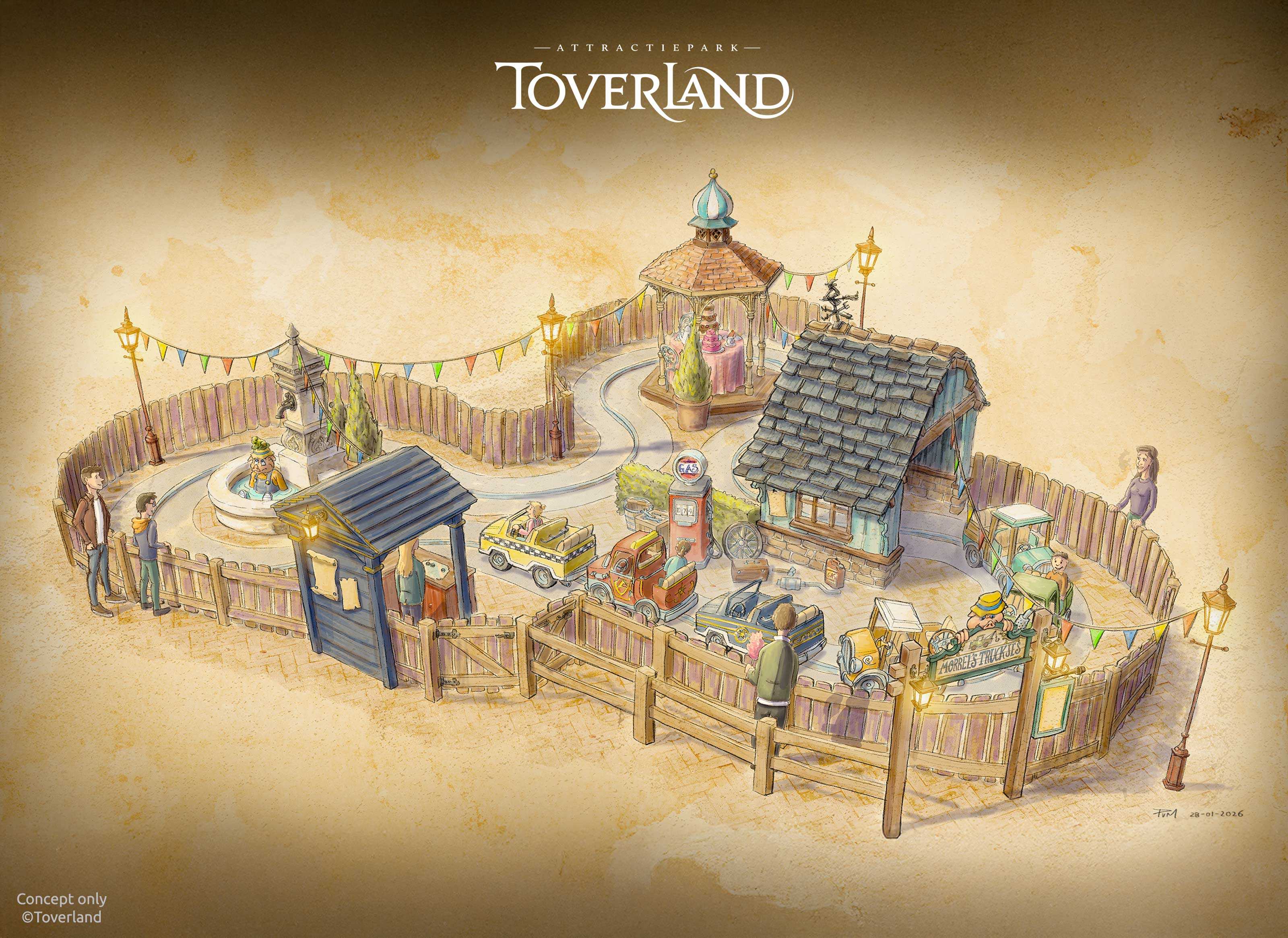 Download de artist impression van de vernieuwde attractie Morrel's Truckjes in groot formaat.